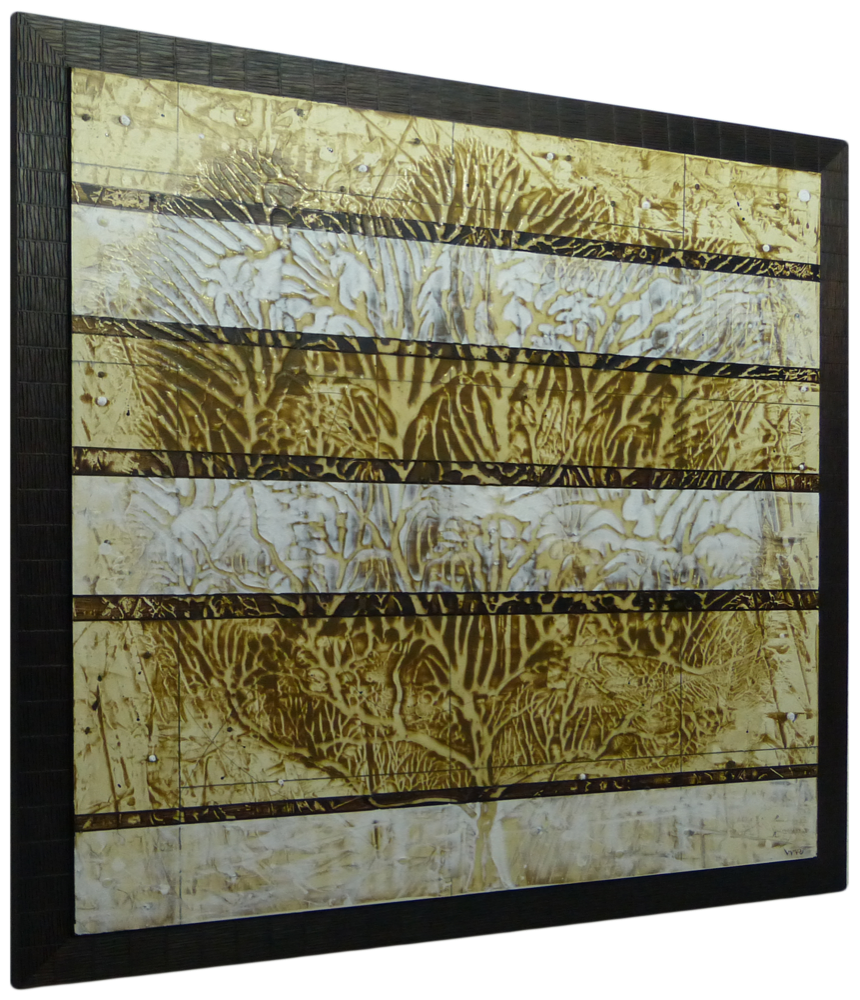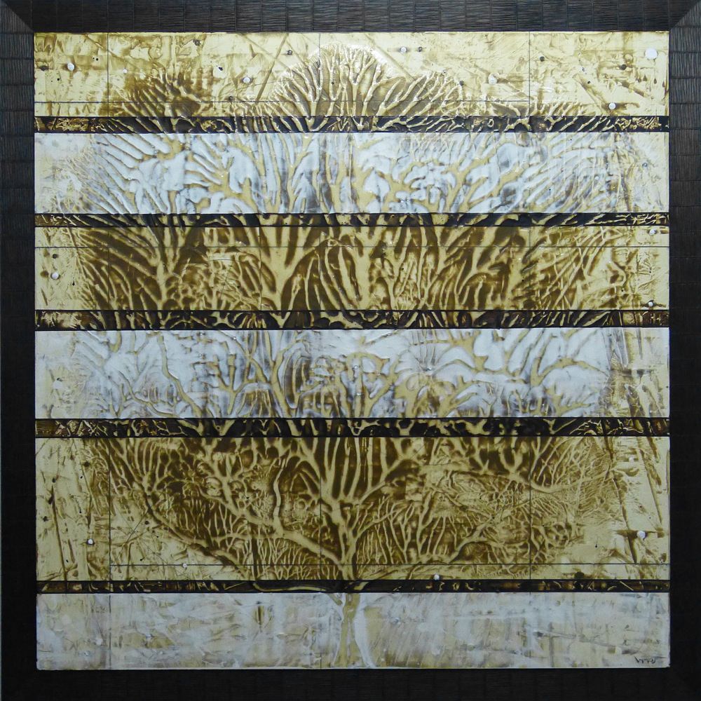 Técnica: Acrílico con texturas sobre DM con moldura de diseño de color vengué.