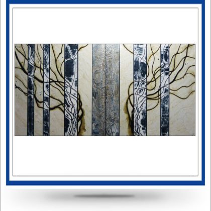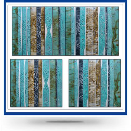 Las obras se pueden colgar separadas o juntas, las medidas exteriores totales unidas son 180x90cm.