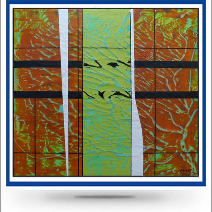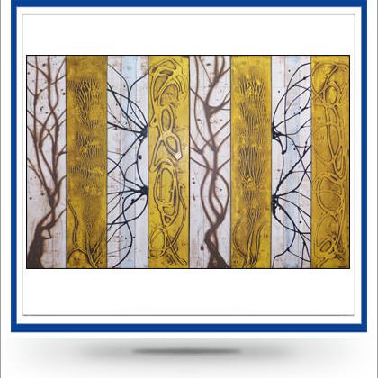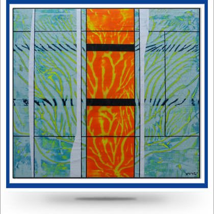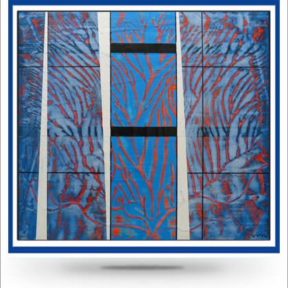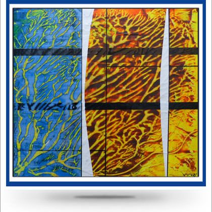 Obra original y única pintada a mano con acrílicos sobre 2 lienzos de 90×90 de tela sobre bastidor ancho de 3cm, con los bordes laterales pintados de negro, por lo que no hace falta enmarcarlo.